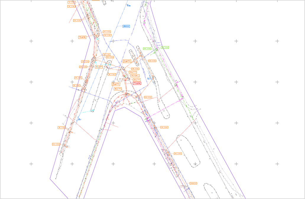 The topographical surveys took place end of August 2023, with the more complex GPR survey taking place over three nightshifts in September 2023, with traffic management in place to enable the team to lift the manholes along the carriageway. The carriageway underground utility survey was carried out with a vehicle-towed GPR system, which limits the amount of traffic management required and can be carried out during a normal working day.